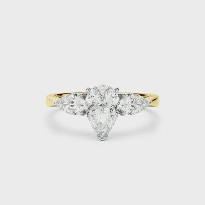 - Side stones: 2 x 0.30ct Pear Cut E+ VS+ Laboratory-Grown Diamonds = 0.60ct TDW